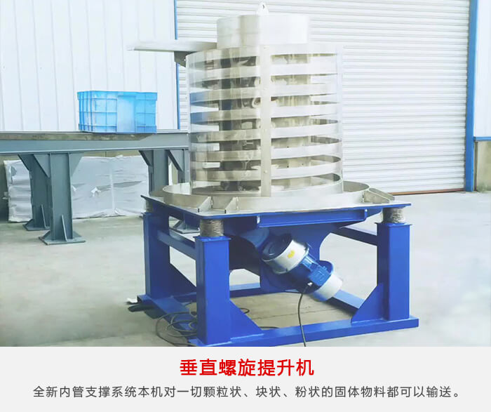 垂直振動螺旋提升機又叫振動螺旋提升機、垂直螺旋提升機、振動垂直提升機等。振動垂直螺旋提升機是一種新型的垂直振動輸送設備,該設備具有蜂窩式底座,全新內管支撐系統本機對一切顆粒狀、塊狀、粉狀的固體物料都可以輸送。
