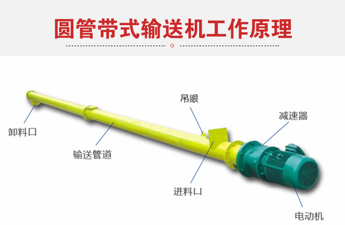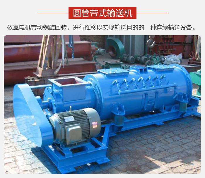 圓管帶式輸送機是依靠電機帶動螺旋回轉(zhuǎn),對物料進行推移以實現(xiàn)輸送目的的一種連續(xù)輸送設備,可以水平、傾斜、垂直輸送粉末、顆粒及小塊狀物料。具有結構簡單、橫截面積小、密封性好、操作方便、維修容易、便于封閉運輸?shù)葍?yōu)點。